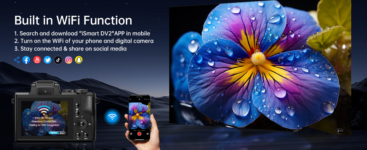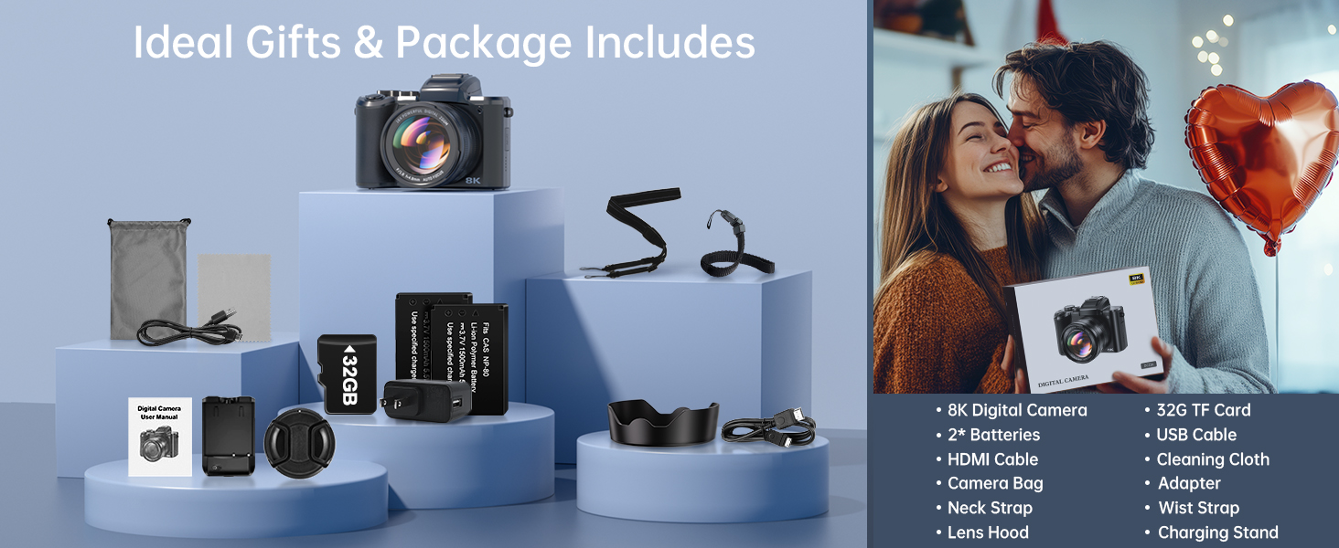 8K Digital Cameras for Photography – Autofocus 88MP WiFi Profession Camera with Dual-Lens – 16X Digital Zoom Photography Camera for YouTube with Lens Hood, Touch Screen, 2 Batteries & Charging Stand