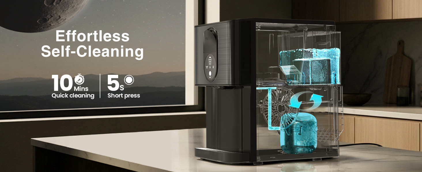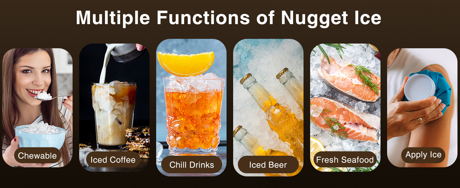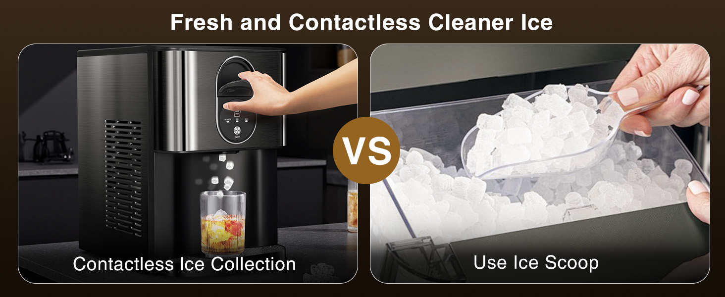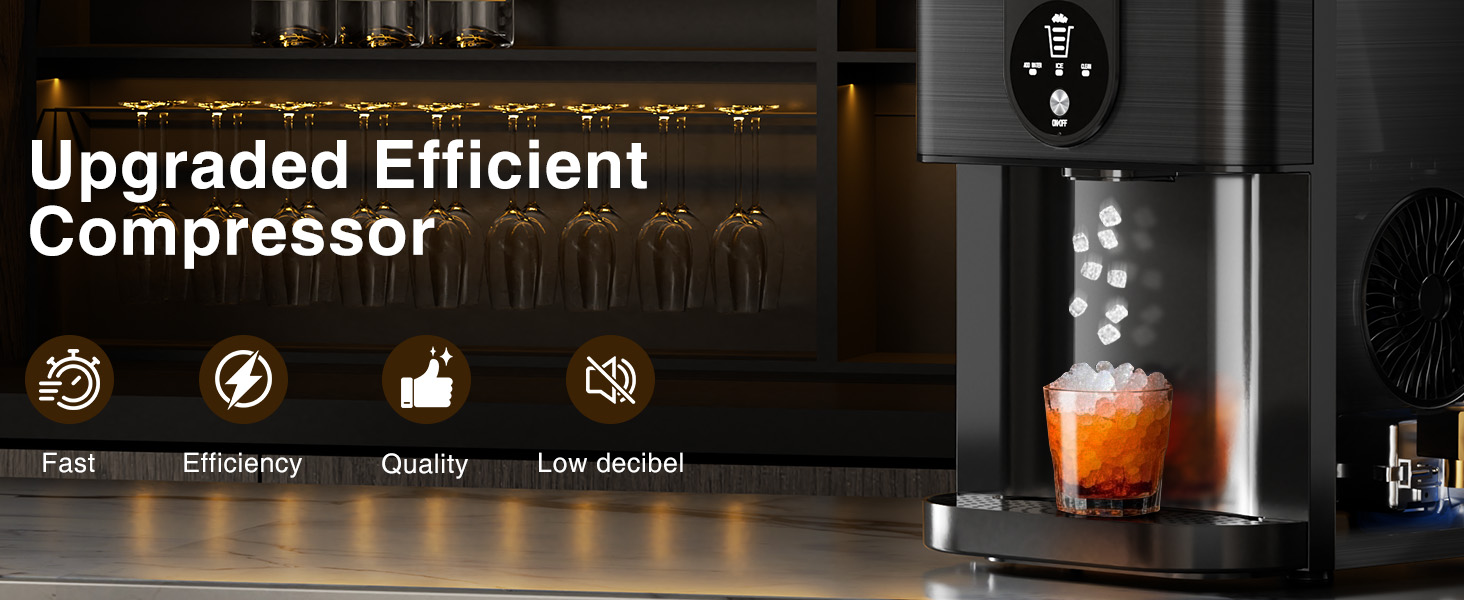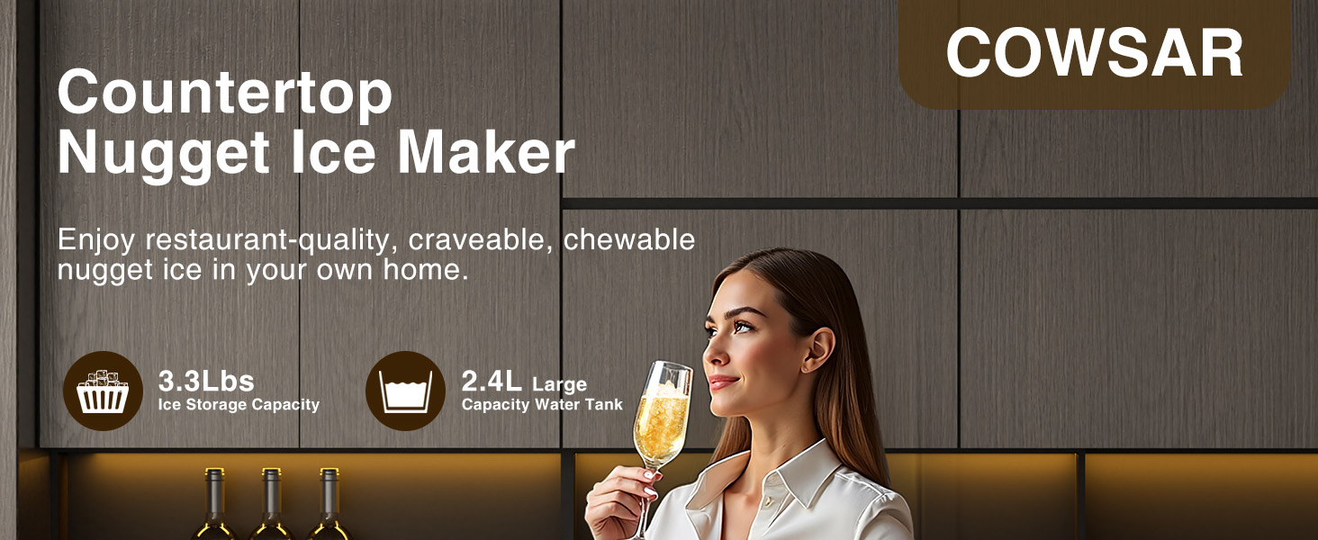 Cowsar Nugget Ice Makers Countertop, Pellet Ice Maker Machine Dispenser with Water Reservoir, Self-Cleaning, 44lbs/24H Soft Chewable Ice Maker Machine for Home/Kitchen/Office, Black Stainless